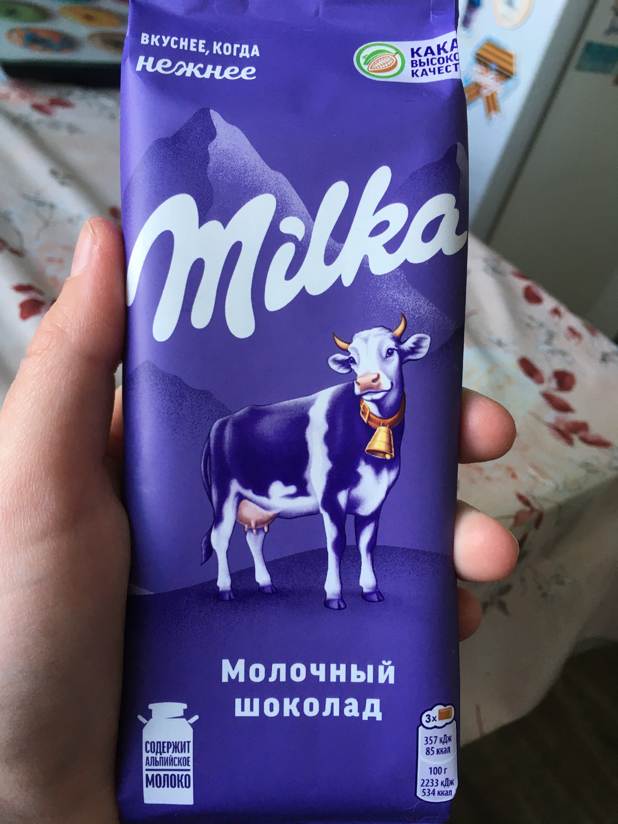 Упаковка Милки – это тщательно продуманная ловушка для мозга. Каждый элемент добавлен для того, чтобы отключить рациональное мышление и включить эмоции. Вчера мне очень захотелось шоколада. Подойдя к полке, я выбирала минут 10. И в итоге остановилась на Милке, хотя были плитки дешевле, больше по весу и с идентичным составом. На мой взгляд, маркетологи этой компании отлично поработали над упаковкой. Хотите знать, как это работает? Читайте статью. Фиолетовый выбран не случайно. Он ассоциируется с роскошью и нежностью, а также вызывает любопытство. Шоколад выделяется среди конкурентов – взгляд цепляется за этот островок, а мозг запоминает его. Это не просто рисунок. Это элемент работающий на четырех уровнях: Горы и луга на упаковке работают для мозга как триггеры «чистоты» и «натуральности», даже если какао выращено в Африке, а молоко привезено из Подмосковья. Фраза работает на трех уровнях: Повторение таких слоганов формирует ложное убеждение: «Только Milka дарит это чувство». Также н