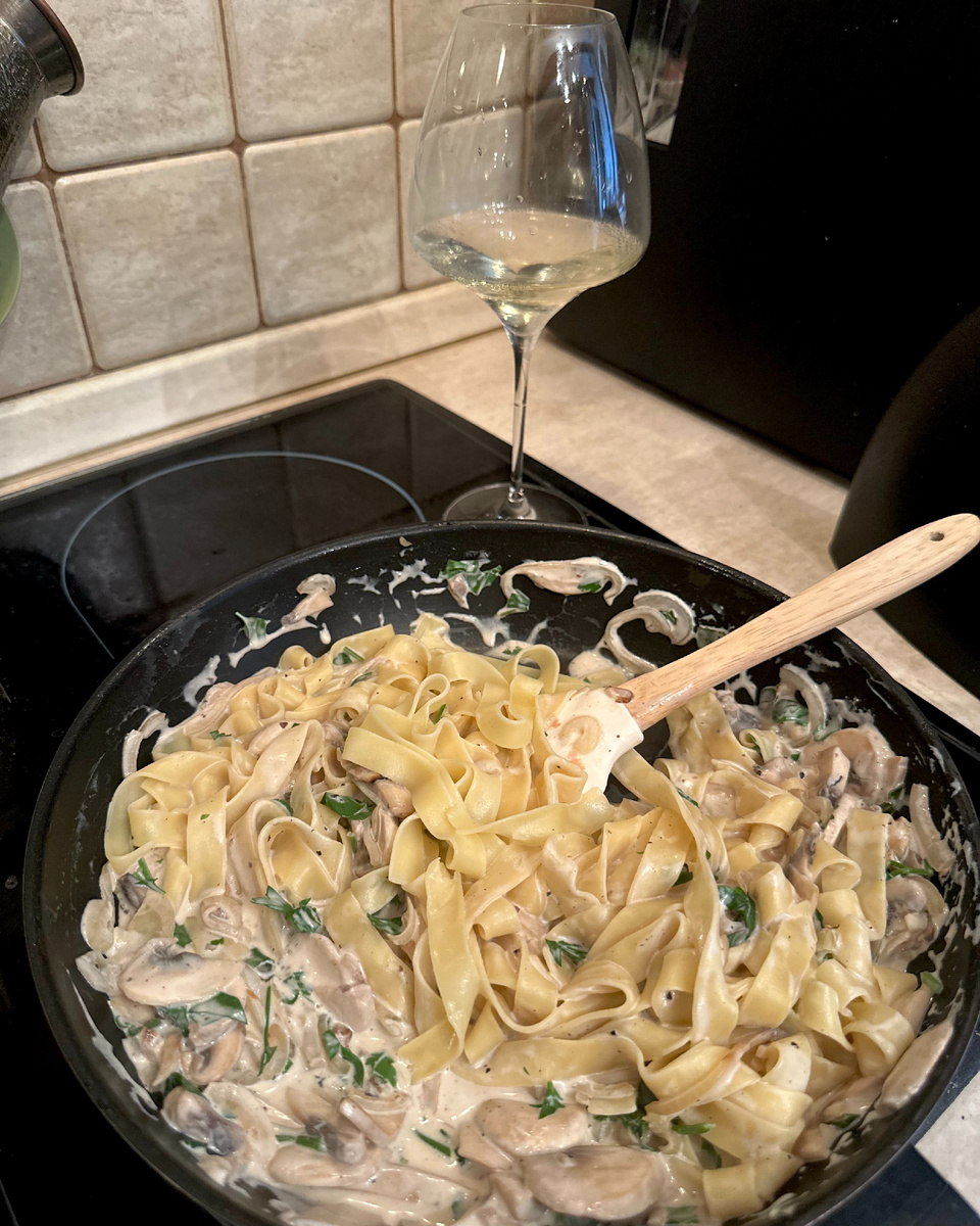 Друзья, впереди выходные, и погода наконец-то закроет наш майский гештальт по шашлыкам. Уверена, что впереди нас ждет weekend, буквально пропитанный ароматом мяса на гриле и обласканный лучами солнца. Но, чтобы на всякий случай перестраховаться, делюсь с вами рецептом пасты за 10 минут. Уверена, применение маринованному мясу вы в случае чего найдете, а по грибам - всегда вопрос. Так что без переживаний запасаемся шампиньонами и поехали. Нам понадобятся: Репчатый лук - 1 средний Чеснок - 1 зубчик Шампиньоны - 300г Крем-чиз - 80г Паста - 100г на человека Петрушка - стебель Мускатный орех, соль, перец - по вкусу Масло - для жарки Пармезан - для посыпки Заказать все необходимые продукты с бесплатной доставкой можно по ссылке. 🔸 Измельчаем чеснок, лук и шампиньоны - полукольцами, рубим петрушку. 🔸 Разогреваем сковородку на сильном огне, добавляем масло, лук и чеснок обжариваем 2-3 минуты до яркого аромата. 🔸 Добавляем грибы, мускатный орех и обжариваем, пока они не уменьшатся в объеме. ?