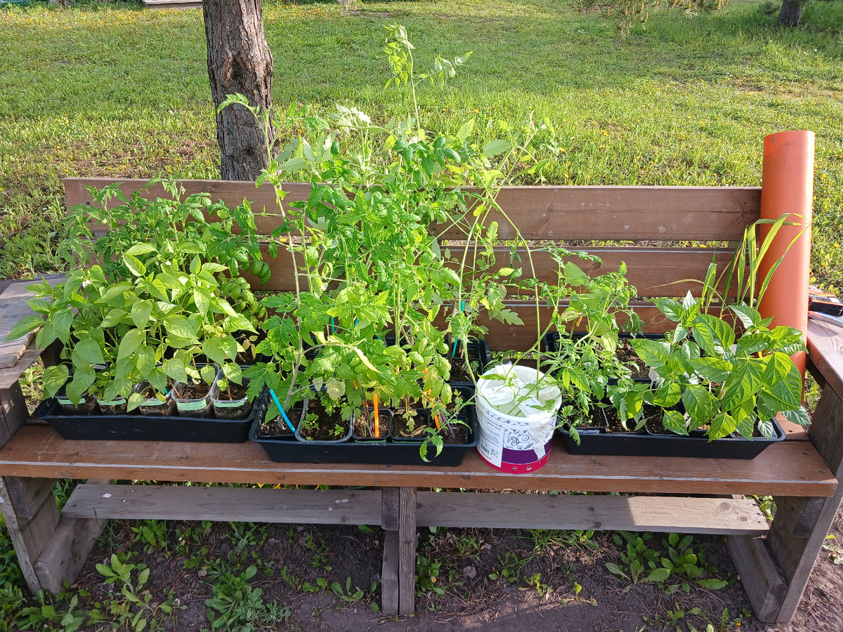 Какая-то жизнь пошла быстрая, 24 часов в сутки не хватает. Я не против активно поработать, искренне считаю, что садовые работы идут на пользу городским жителям, но все должно быть в меру. В том числе и нагрузки. Вторые выходные я вспоминаю рекламу про больную поясницу. Там скрюченные люди держатся за спину и чем-то ее мажут. Кажется, пора прикупить себе эту мазь, потому что не нравятся моей пояснице такие ударные дни. А что делать? У старшего сына 2 приглашения на дни рождения - первое в пятницу до вечера, второе в обед в воскресенье. А значит дела 2 выходных нужно сделать за субботу, т.к. от воскресенья остается только утро. Поэтому в субботу я встала в 7 утра, выпила кофе и побежала в огород. Пока все спят могу спокойно поишачить. Вытащила рассаду, поцокала языком и начала. Пока были чистыми руки подготовила бирки, чтобы не перепутать сорта. Потом достала кофейный жмых и рассыпала по гряде. Это не мой жмых, мы столько кофе не выпиваем. Просто на авито нашла объявление и забрала