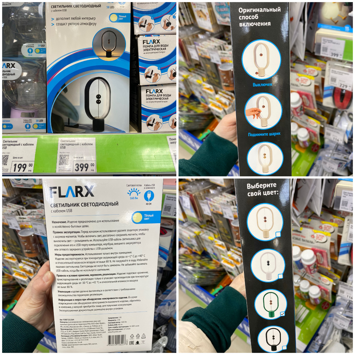 Всем привет. Меня зовут Наталья. Я очень рада видеть вас на своём канале. Сегодня мы с вами прогуляемся по магазину Фикс Прайс, который находится по адресу: город Йошкар-Ола, улица Йывана Кырли, дом 15б. В этот раз я нашла много самых разнообразных новинок. Так что устраивайтесь поудобнее. Желаю всем приятного времяпровождения. Светильник светодиодный стоимостью 399 рублей. С ним в комплекте идёт кабель USB длиной 40 см. Срок службы светодиодов 10 000 часов. Состав: ударопрочный полистирол, ПВХ, магнит, сталь, медь, ЭВА. Страна изготовления Китай. Светильники представлены в четырех вариантах цвета. Игрушка "Надувная неваляшка" стоимостью 399 рублей. Её высота 90 см. На дне игрушки расположена капсула с песком. Состав: ПВХ, песок. Страна изготовления Китай. В магазине 4 варианта. Парфюмированный крем-маска для рук с ниацинамидом LUOFMISS стоимостью 99 рублей. Номинальная масса 80 грамм. Страна изготовления Китай. Данный крем-маска имеет нежную текстуру, которая обволакивает кожу рук и с
