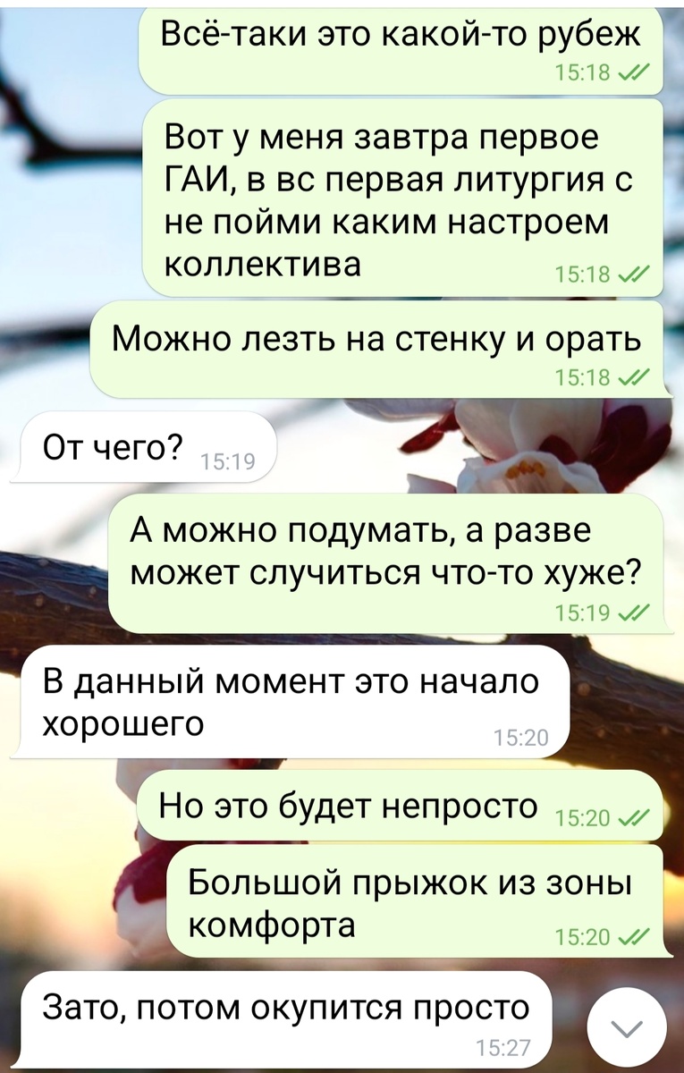 Мы крупно поругались с Р1. Письменно. Я, наконец, решила высказаться, что мне перебегают дорогу, а она озвучила, что видит мои притязания, флаг в руки - договорись только с настоятелем и нас ты больше не увидишь. Это не входило в мои планы. Удалось прояснить, что Р1 не "уводила" у меня службы, просто в силу её "временности" не вся информация поступала к ней своевременно. Спустя неделю мы душевно поболтали в перерыве, я убедилась, что ей тоже нужны деньги, она - что я не соперница-конкурентка в силу нехватки опыта, и мы "задружили". А блистательно спетая Пасха с неподкачавшим тенором и вовсе расположила её ко мне.