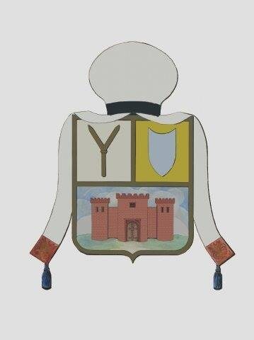 В центре композиции караимского герба изображены два предмета с интересной историей, о которой мы поговорим в данной статье. Это щит и двурогие вилы, которые на самом деле являются интерпретацией знаков, изображенных на мраморной плите над Большими воротами (Биюк-Капу) городища Чуфут-Кале.