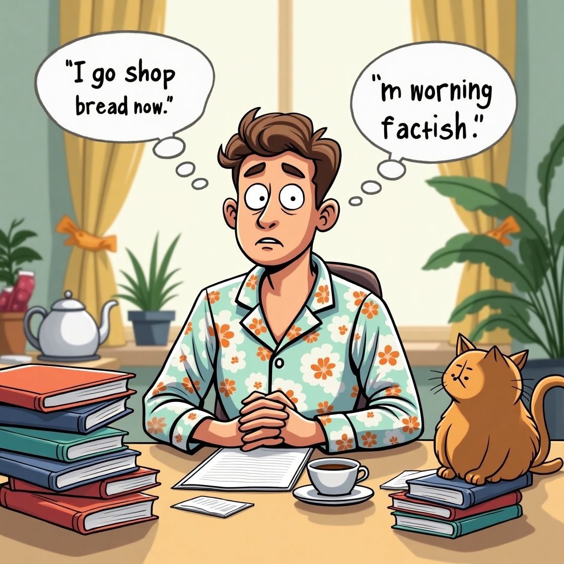 Однажды я проснулся с гениальной идеей: а не выучить ли мне английский за неделю? Ну а что, сейчас же всё в интернете - курсы, тренировки, носители языка на YouTube, обещания «заговорите за три дня». Думаю, если уж я смог за один день испечь пирог из майонеза и случайно вымыть пол пылесосом - то язык точно осилю! На всякий случай скачал 6 разных приложений, распечатал себе карточки со словами, записался на вебинар, и включил сериал на английском. Без субтитров. Сериала я не понял, но получил искреннее удовольствие от того, как в одной сцене кто-то яростно кричал «Where is my chicken?!» - видимо, драматическая кулинария. Начал день с фразы «Good morning» перед зеркалом. Улыбка была уверенной, даже зубы немного блестели. Прогресс! За утро выучил 20 слов, к обеду уже был горд собой, к вечеру попытался составить фразу: "I go shop. Bread. Now." На английском она звучала как будто я — Тарзан, но в голове это уже было почти Оксфорд. Даже записал аудиосообщение другу: — «Hi, bro! How you