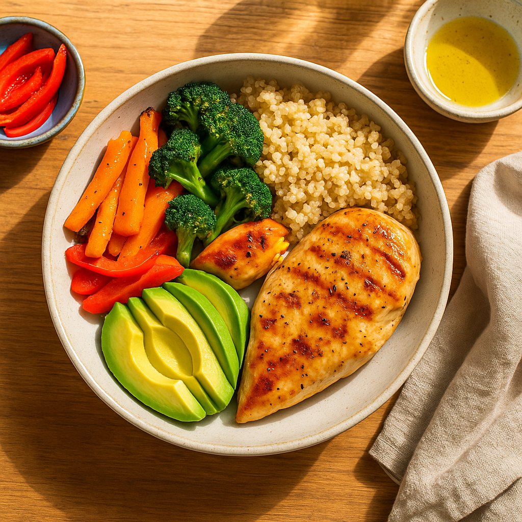 💡 Основа — разнообразие в тарелке: каждый цвет овощей отвечает за свой набор витаминов, минералов и антиоксидантов. Чем больше цвета — тем больше пользы. Постный белок (яйца, рыба, бобовые) помогает дольше сохранять сытость. Цельнозерновые продукты стабилизируют уровень сахара и дают энергию без скачков. А 25–30 г клетчатки в день — это как щётка для организма: она улучшает пищеварение и замедляет усвоение калорий.