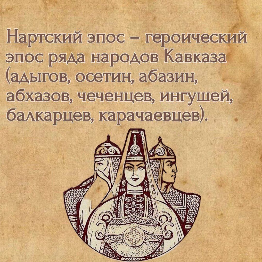 Правильный ответ нашего вчерашнего опроса - Нартский эпос! Прочитать об этом роде литературы можно в нашей небольшой статье. #ЭтноЭпос Нартский эпос – героический эпос ряда народов Кавказа (адыгов, осетин, абазин, абхазов, чеченцев, ингушей, балкарцев, карачаевцев). Упоминания встречаются у кумыков (Дагестан). В структурном отношении нартский эпос – это совокупность не объединённых общим сюжетом сказаний об отдельных богатырях, которые находятся в разной степени родства между собой, и об их мудрой наставнице и чародейке «матери нартов» Сатаней, или Сатане. Следы Нартского эпоса прослеживаются почти у всех народов, населяющих Кавказский хребет. Исследователи полагают, что эпос начал создаваться в VIII–VII веках до нашей эры, а в XIII–XIV веках разрозненные сказания стали объединяться в циклы, группируясь вокруг какого-либо героя или события. Главным героем, объединяющим все циклы и национальные вариации, является богатырь Сослан, рождённый из камня, имевший всего одно уязвимое место и