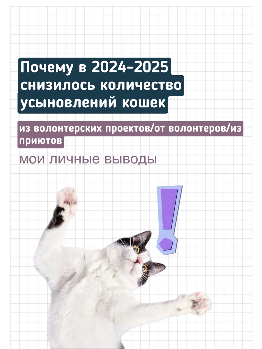 Почему в 2024–2025 снизилось количество усыновлений кошек из волонтерских проектов/от волонтеров (мои личные выводы)