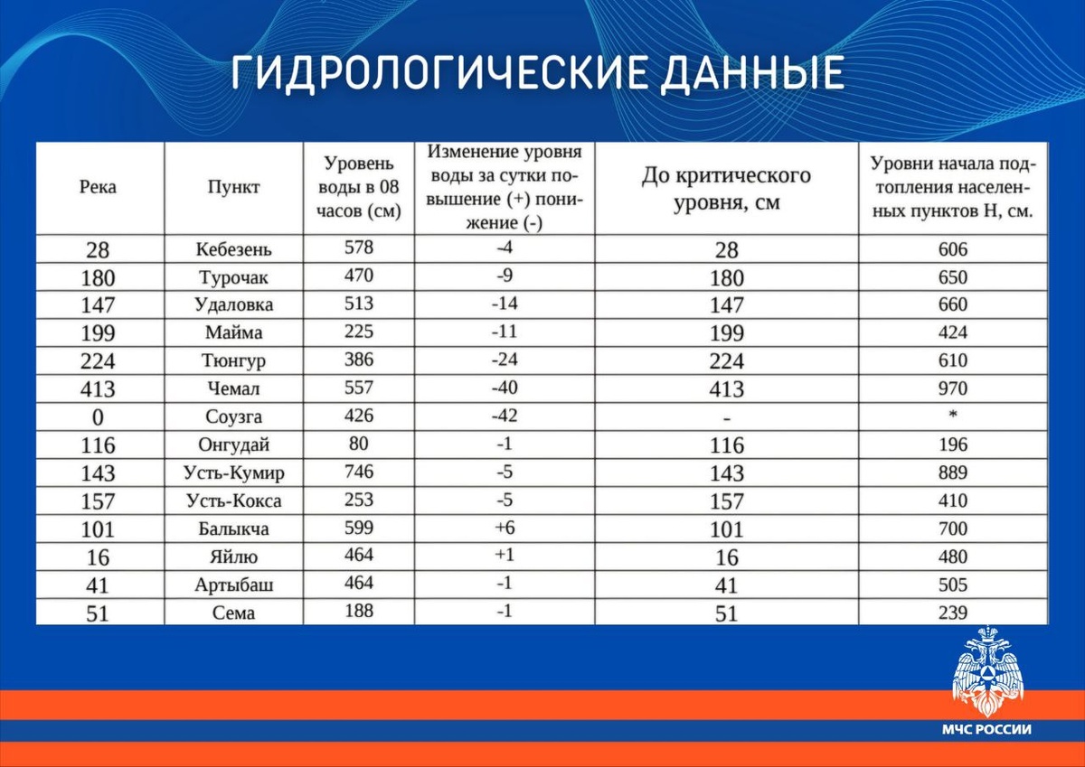 🌊Гидрологическая обстановка на водоемах Республики Алтай по состоянию на 18 мая. @04mchs