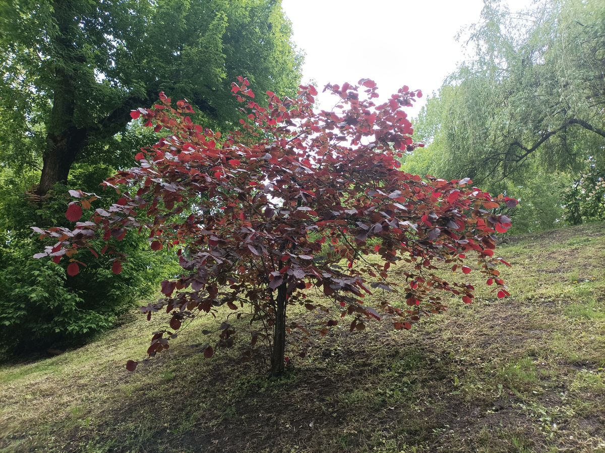 Гомель встретил пасмурным небом, но без дождя. Пообедали в Батьках и по Киевскому спуску прошли в парк. По пути встретили такое красивое дерево.