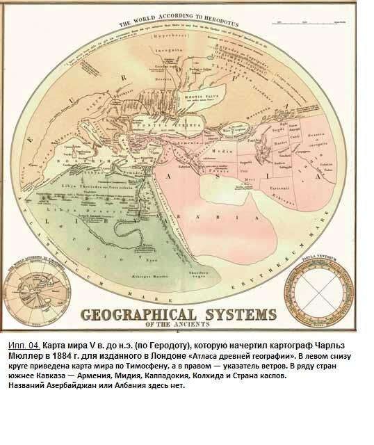 Эти важные источники подтверждают то, что раньше севернее Аракса не существовало страны, называемой Азербайджаном, что многократно утверждали также и иранские исследователи. Однако современные историки Азербайджана и особенно дипломаты утверждают, что их страна, включая территорию севернее Аракса, именуется так по крайней мере 2000 лет.На всех античных, исламских и европейских картах (илл. 8—38), приведенных в Приложении к настоящему исследованию, можно видеть, какими представляли себе территории южнее Кавказа в древние и средние века греческие, арабские, иранские и европейские картографы (детальные пояснения — в пятой главе).