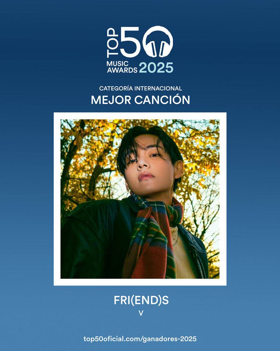 🔮 Тэхён победил в номинации "Лучшая песня" в международной категории на церемонии Top 50 Music Awards 2025!