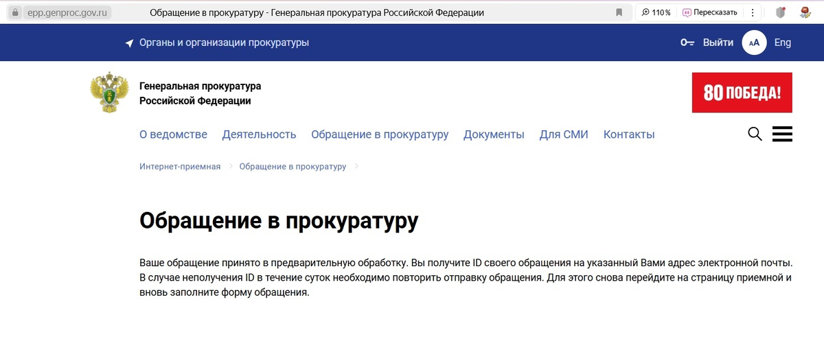 То есть, сейчас направив письмо на официальный сайт ГП РФ…не факт, что оно вообще направлено. «Цирк уехал, клоуны остались».