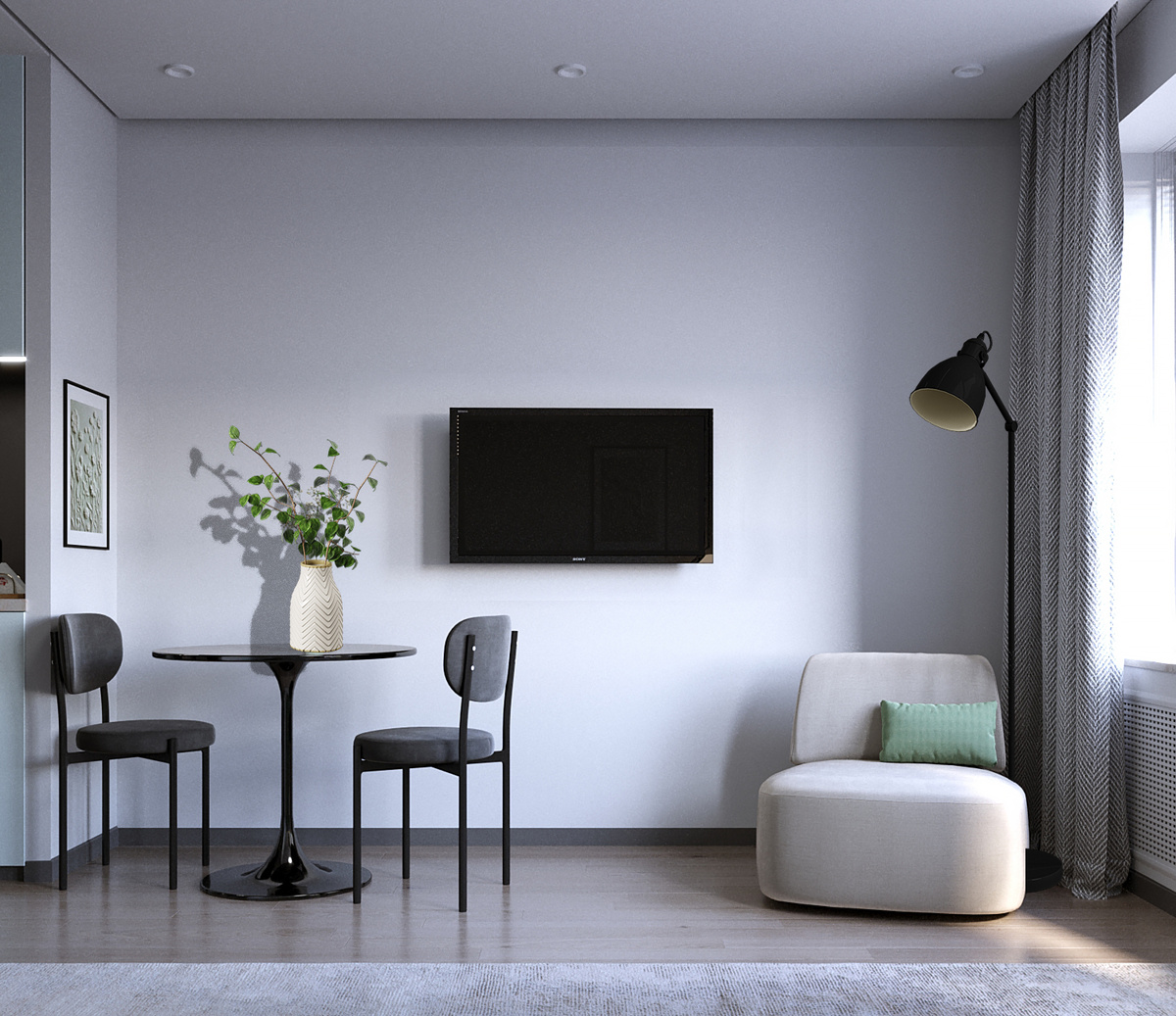 Заказчица хотела бюджетный, но стильный проект. Она привыкла к высокому уровню комфорта и не представляет жизни без него, даже в маленькой квартире. Мы ориентировались на комфорт хорошего гостиничного номера. Люди, которые часто ездят в командировки, знают, как удобно жить в компактном пространстве с минимумом вещей.