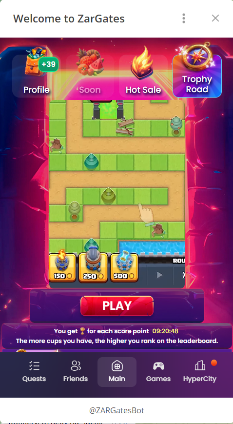 Одна из важнейших штук в ZarGate, так как Trophy Road - единственный способ (кроме покупки) получить важные артефакты, серьёзно влияющие на абсолютно все аспекты, от дохода в золоте, до торговли на внутреннем рынке.