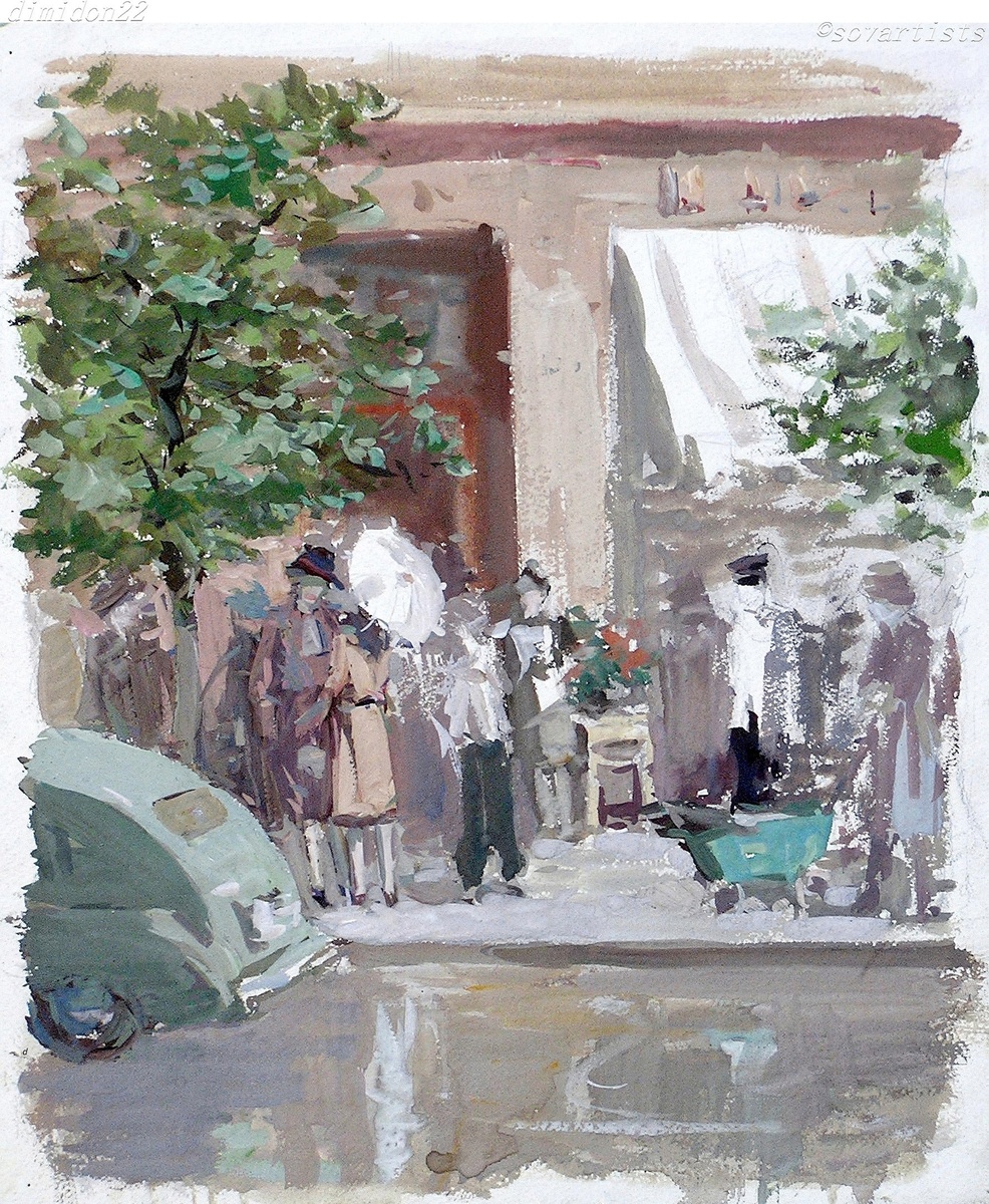 Минаев Владимир Николаевич (08(21).02.1912, Москва - 17.02.1993, там же ). «Весна». 1957 год. Бумага, гуашь, графитный карандаш; 390 х 329 мм.; (Картинная галерея городского округа Красноармейск Московской области).