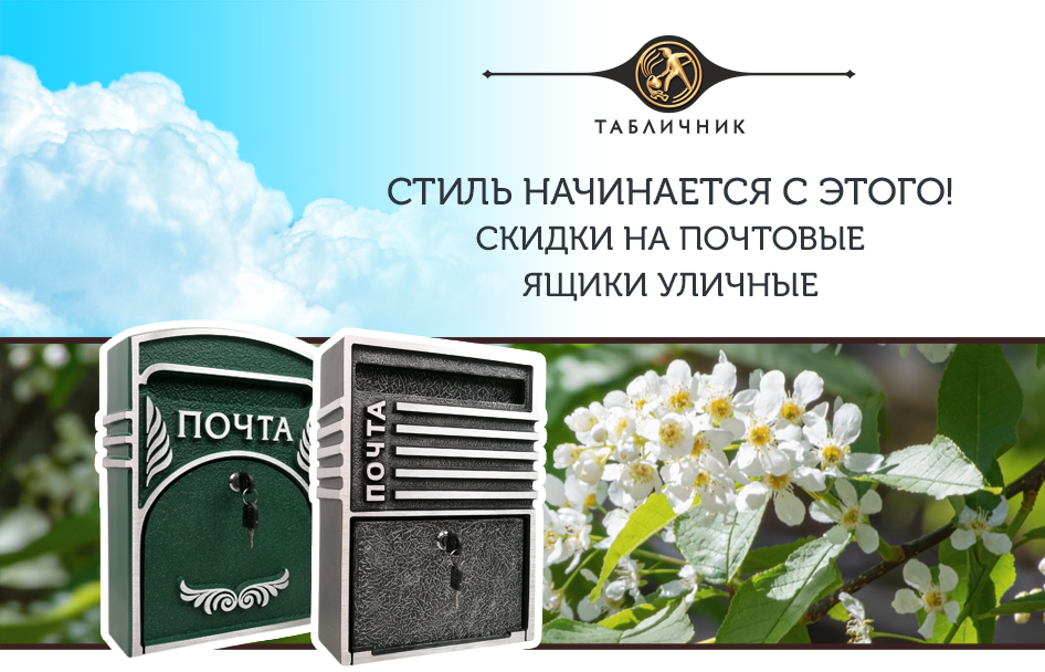 Источник фонового фото на баннере: GettyImages Черёмуха, сирень, акация… каждый май одно и то же – но сердце замирает, как в первый раз. Природа делает своё дело: манит ароматами, шелестит молодой листвой. Мы тоже не отстаём с сезонными обновлениями. Таблички, гербы, почтовые ящики – цветут и пахнут выгодой! Например, уличный почтовый ящик для частного дома вы сейчас можете заказать со скидкой 15%! Литой почтовый ящик от «Табличника» – не просто коробка для писем, а украшение и знак отличия для вашего дома. Ведь у каждого дизайна есть свой характер, своё настроение – и свой идеальный хозяин. Металлические почтовые ящики изготавливаются вручную по авторской технологии художественного литья. Над одним изделием трудится до 10 мастеров. В качестве материала используется алюминий – лёгкий, прочный, устойчивый к коррозии. Это особенно важно для уличных почтовых ящиков, которые должны выдерживать дожди, морозы и перепады температур. Наши изделия сохраняют первоначальную красоту десятилетиями.
