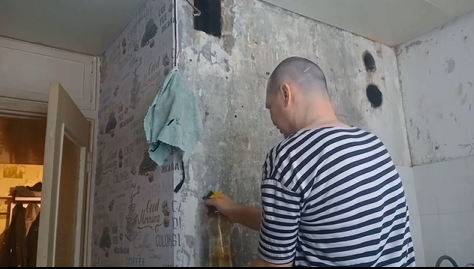 Друзья, всем привет! Вот замутил ремонт. В общем, пока есть возможность, хочу поделиться, может кому-то пригодится. В общем, виниловые обои на флизелиновой основе. Что они из себя представляют? То есть, уже давно ни для кого не секрет: мажется только стена, на сам обой клей не наносится. В общем, надо хорошенько увлажнить , как следует, и чем больше вы ее увлажните, тем будет лучше, потому что бетон он сильно в себя тянет влагу, очень сильно. В общем, пропитаете стену на влажную, сразу нанесите клей. Вот ребята, обой – метровый, если мы намажем на него клей, такую махину будет клеить неудобно. Ну и вот, друзья, пока один мажет стену клеем, надо чуть-чуть, буквально немножко увлажнить обои.И поверьте, это вам сэкономит кучу нервов при поклейке листа. Ну вот, друзья, наклеил я сейчас это полотно.Очень идеально, в общем, о чем что я хотел собственно показать: вот сейчас мы наклеили лист, как видим, лист получился идеальный. У вас нет ни пузырька, ничего.Очень идеально, в общем, о че