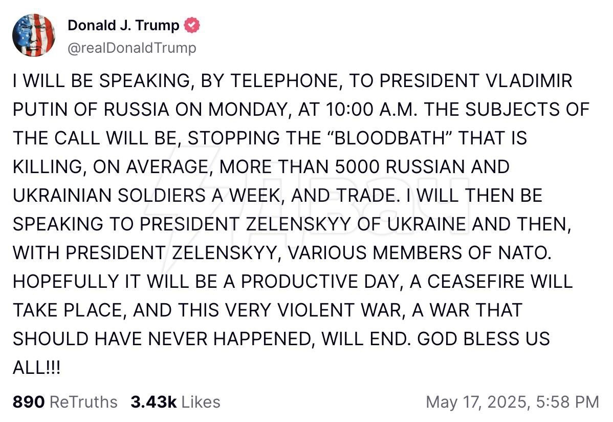 ⚡️Трамп в понедельник проведёт переговоры с Путиным