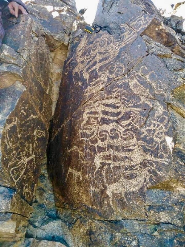 Петроглифы в горах Гоби-Алтая. Уникальное по исполнению изображение "оленных" мотивов.