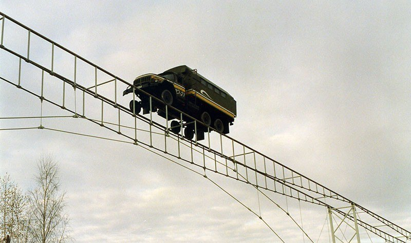 В качестве подвижного состава использовался автомобиль ЗИЛ-131 — на него установили специальные металлические колёса для движения по струнным рельсам. Испытания проводили и на статические, и на динамические нагрузки. Проверяли устойчивость и поведение конструкции во время движения.