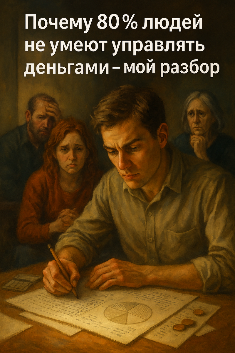 Сколько раз вы ловили себя на мысли: *«Куда делись деньги?»* Зарплата только пришла, а через неделю — пустой счёт, снова займы, кредитки и вечная тревога. Это не совпадение и не "так сложилось". По моему опыту, 80% людей не умеют управлять своими деньгами. И сегодня я разложу по полочкам, почему так происходит и как я сам через это прошёл. В школе нас учат синусам и теоремам, но не учат составлять семейный бюджет. Большинство впервые узнаёт о процентах по кредиту, когда его уже оформляют. Соцсети показывают богатых блогеров и "успешных" трейдеров. Люди начинают верить, что деньги — это просто удача, а не управление. Кредитные карты и микрозаймы стали настолько доступными, что долговая яма незаметно становится "стандартом". Фразы вроде *«зато хоть сейчас поживу»*, *«будет повод взять ещё один кредит»* — это оправдание внутреннего страха перед деньгами. Когда-то я был точно таким же. — Никаких накоплений. — Минус на счёте — это было нормально. — Кредитки крутились как
