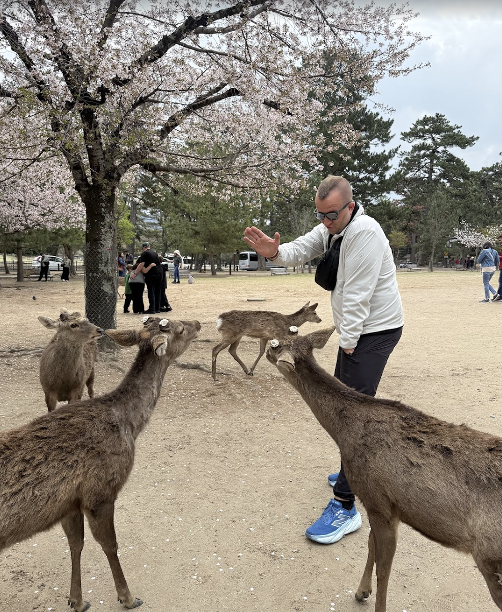 Иногда путешествие — это не просто поездка, а такая мини-перезагрузка мозга и души. Вот примерно так у нас и получилось, когда мы поехали в Нару и в Арасияму. И да, день вышел такой… будто ты утром проснулся в студии Ghibli, а вечером уже пил чай с дзэн-монахами. Нара и Арасияма — день, когда мы чуть не стали монахами… или оленями Начнём с Нары: город, где олени ведут себя как гуру дзэн. С утра пораньше мы поехали в Нару. Доехать просто — электричка идёт из Осаки, около 40 минут, и ты оказываешься в каком-то параллельном мире. Городок сам по себе небольшой, но атмосфера там просто нереальная. Прямо от станции идёшь и через 10 минут попадаешь в Nara Park — и всё, ты уже не турист, а участник древнего ритуала по кормлению оленей. Олени в Наре считаются священными животными, ещё со времён VIII века, когда считалось, что божество Такамикадзути прибыло в Нару верхом на олене. С тех пор их там не только не трогают, но ещё и уважают, и, что забавно — кормят спецпеченьками, которые можн