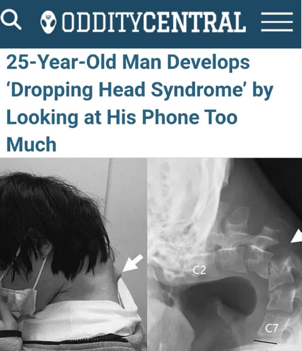 Японец 25 лет настолько залипал в телефон, что разучился поднимать голову. Диагноз — «синдром опущенной головы». После многолетнего киберстоя он получил: постоянные боли, выпирающий затылок, проблемы с глоткой и минус несколько килограммов. Спину собрали обратно болтами, как старый табурет. Мир, где от экрана не отрываешься даже когда ломаешься.