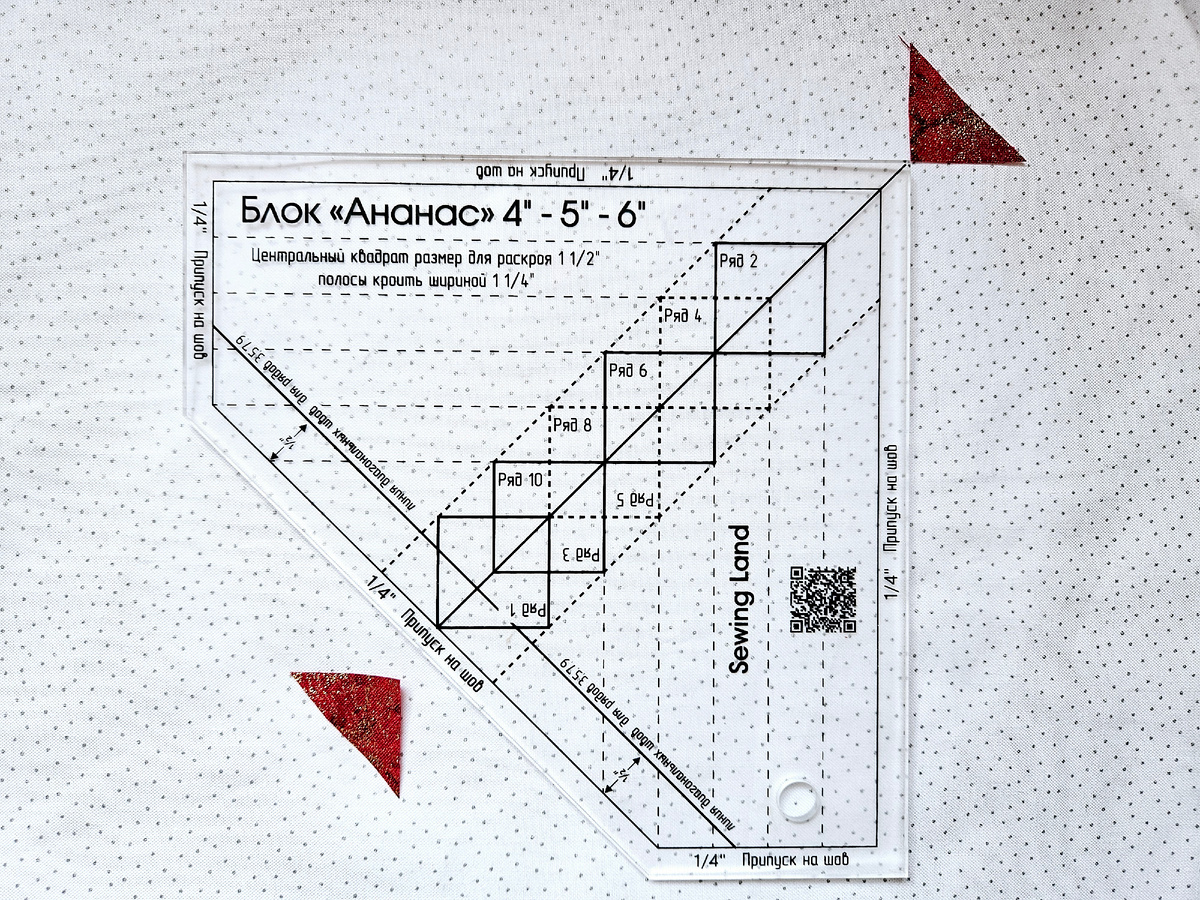 Особенности: с этой линейкой можно делать 2 варианта блоков - классический "ананас" и тот, что мы называем "русский квадрат".