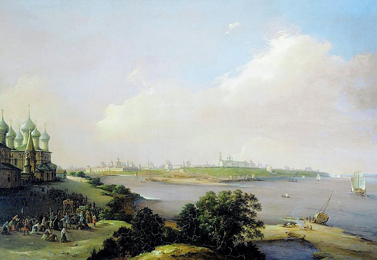 - Погода стоит осенняя; здесь говорят, что такою она и должна быть об эту пору; за один день всю летнюю жару смыло холодным дождем. Теперь, говорят, жарко уже не будет до будущего года; но я настолько привык к неудобствам летнего зноя — пыли, мухам, комарам, — что мне даже не верится, чтобы одна-единственная гроза могла избавить меня от всех этих напастей… я убежден, что мы еще застанем дни жаркие и душные, ибо на Севере зной бывает не столько резкий, сколько давящий. Город, куда я прибыл, служит важною перевалочного станцией во внутренней торговле России. Через него Петербург сообщается также и с Персией, Каспийским морем и всею Азией. Здесь протекает Волга — великий и оживленный природный путь, и Ярославль служит национальною столицей водных сообщений, умело налаженных и образующих предмет гордости русских и один из главных источников их благосостояния. К Волге примыкает обширная сеть каналов, составляющих богатство России. Город Ярославль, столица одной из самых примечательных губерний во всей империи, заметен уже издалека, как и предместья Москвы. Подобно всем провинциальным городам в России, он обширен и кажется безлюдным. Обширность его — не столько от многочисленности обитателей и домов, сколько от огромной ширины улиц и площадей и оттого, что здания здесь обычно расположены далеко друг от друга, так что жителей почти и не видать. От края до края империи царит один и тот же архитектурный стиль. Вот вам пример того, насколько ценят сами русские свои псевдоклассические здания.