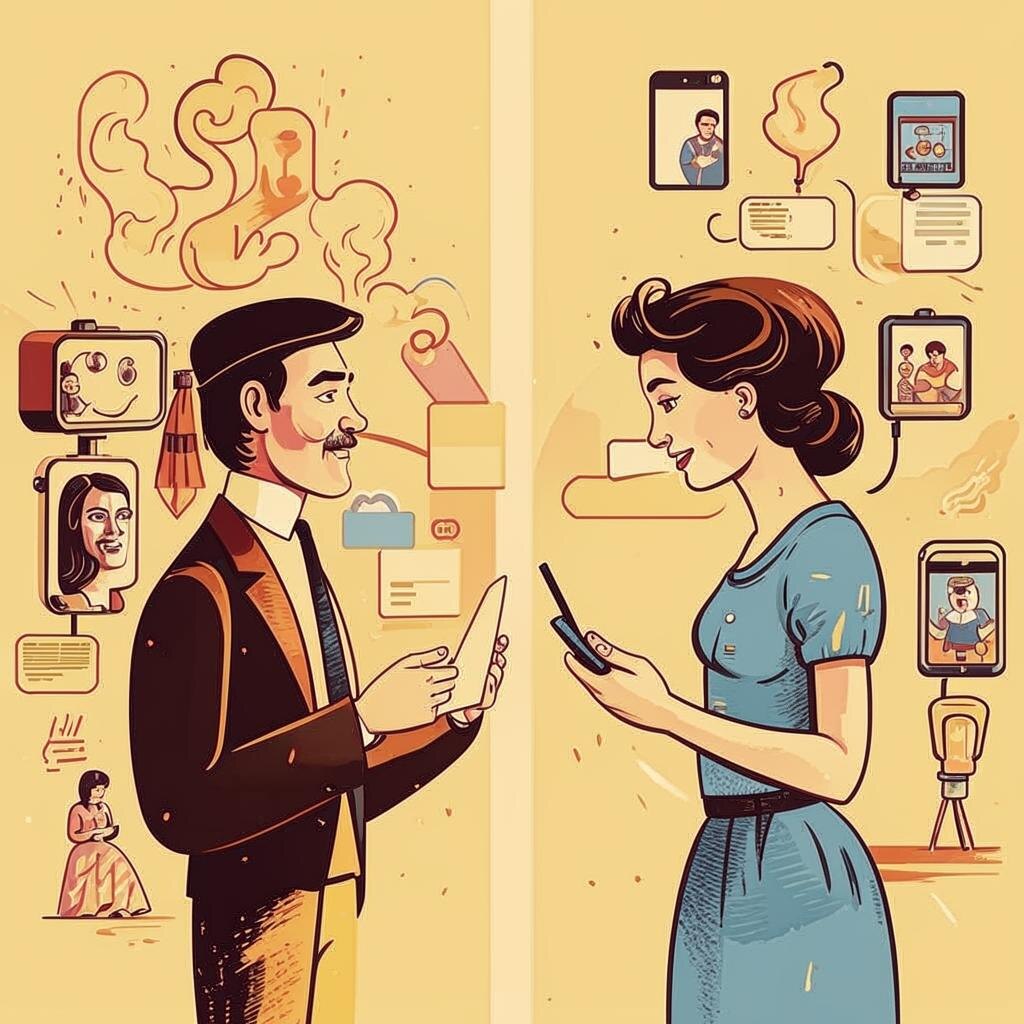 Раньше все было гораздо проще (и сложнее одновременно). Представь ситуацию: ты идешь по улице, встречаешь симпатичного человека... Но вот беда – телефона у него нет под рукой, а спросить номер прямо кажется чем-то из ряда вон выходящим! Тогда приходилось полагаться на удачу и свои коммуникативные навыки. Нужно было подойти первым, улыбнуться, заговорить о погоде или еще какой-нибудь банальности – но именно так начинались многие великие истории любви и дружбы! Или вспомните вечеринки друзей. Вы стоите там, кто-то вас представляет друг другу, вы говорите "привет", обмениваетесь парой фраз, и если чувствуете взаимную симпатию, то уже начинаете искать возможность встретиться снова. И тут начинается настоящее испытание: нужно вспомнить имя этого чудесного незнакомца/незнакомки через неделю-другую после встречи! 😅 А еще были письма! Настоящие бумажные письма, написанные от руки, вложенные в конвертик и отправленные почтой. Сейчас представить сложно, сколько эмоций вкладывалось в каждое с