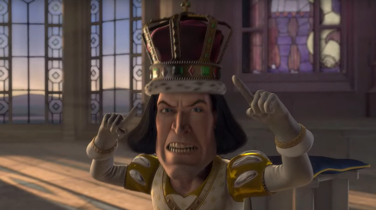 Этот коротышка конечно смог получить титул Лорда и почти получил власть в Дюлоке, но если хорошо взглянуть на мультфильм «Шрэк» и сам замок Дюлок в нём, то мы можем увидеть, что Фаркуад спм ничего толком не делает и ничего не добивается. Он тупо расчитывает на троне и попивает сок, пока его слуги и рыцари сами за него всё делают. То-есть Фаркуад это просто жалкий лентяй, который ничего не делает. Хотя это нн помешало ему добиться титула Лорда и уважения народа, который в тайне ненавидел его и проклинал, учитывая его жестокие запрыты и диктаторские законы. Даже, когда он стал призраком в короткометражке, он сам ничего не делает. За него все его злодеяния выполняет сам палая Телоний.