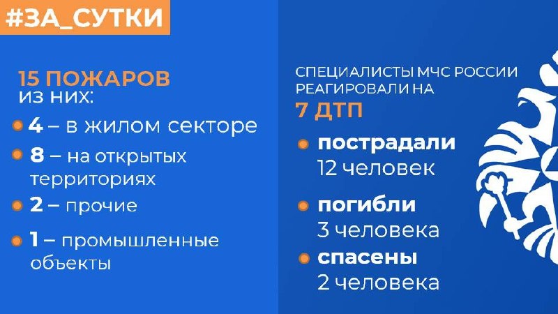 👩🚒МЧС России: за прошедшие сутки ликвидированы 15 пожаров, пострадал 1 человека, погиб 1, спасен 1 человек