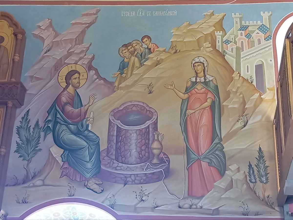 Неделя о самаряныне Сегодня мы вспоминаем встречу Спасителя с самарянкой у колодца. Христос начинает беседу с того, что просит у женщины пить. Эта обычная просьба вызывает у самарянки искреннее удивление, ведь иудеи презирали самарян, считали их нечистыми и не общались с ними. Своим обращением к самарянке Христос показал, что пришел спасти всех людей без исключения и для Него нет разницы, какого происхождения человек. Далее в беседе Христос обещает женщине дать ей воду живую. Эта живая вода — Слово Божие. Как без воды погибает все живое, земля не даёт плодов, так и душа, не напоенная Евангельским учением превращается в бесплодную пустыню. В синаксаре (краткое описание праздника) указано имя самарянки — Фотиния. Интересно, что в месяцеслове самарянка называется Фотиной, а под именем Фотиния известна другая святая — преподобная Фотиния. Впоследствии святая Фотиния (Фотина) проповедовала Христа и приняла мученическую смерть вместе со своими сыновьями при императоре Нероне. Памят