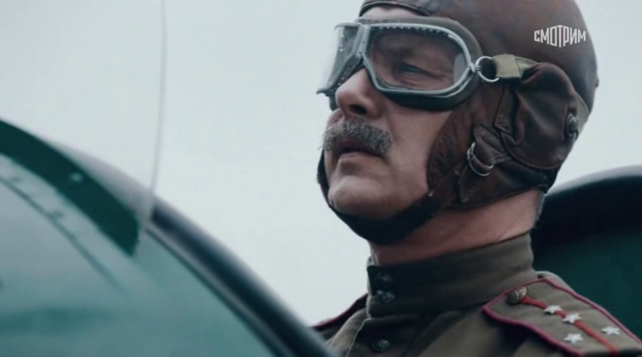 А вот это командир группы нашей полковой разведки, другой капитан, Петр Степанов, наблюдает, как У-2 падает. Играет его Александр Устюгов.