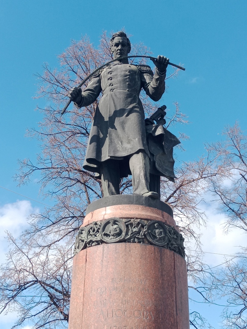 На постаменте надпись: «Великому русскому металлургу Павлу Петровичу Аносову. 1797–1855» Павел Петрович Аносов. Что знаем и чего не знаем мы о человеке, который сделал славу Златоусту и которым мы гордимся? Точная дата рождения Павла Аносова была определена только на рубеже 21 века. Всегда велись споры, родился ли он в 1797 или 1799 годах. Тверские архивисты (Тверь – родина металлурга) нашли, наконец, метрические книги, где зафиксирована дата рождения будущего учёного – 29 июня 1796 года. С 13 лет, оставшись сиротой, вместе с братом, который быстро умер, и двумя сёстрами, Аносов воспитывался в доме своего деда – горного чи