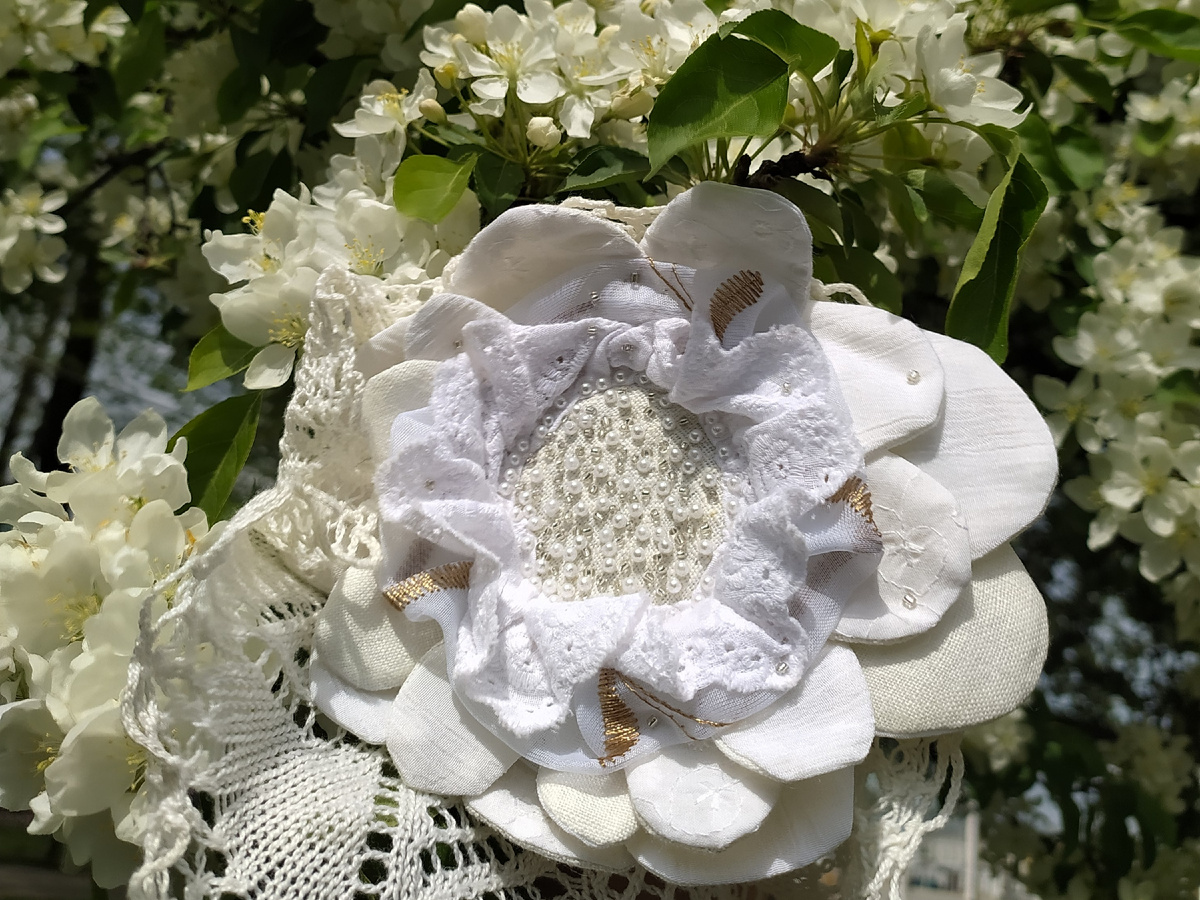 Белым садом стала Кострома нынче. Яблони цветут всюду, больше всего их в самом сердце города, в сквере Ивана Сусанина. Головокружительное место я запечатлела, приглашаю любоваться. Представьте сладкий тëплый воздух внезапно летнего дня (+27°) и мажорное гудение толстых пушистых добродушных шмелей. И брошь «Белый цветок», апофеоз яблоневого цвета. Сказка! Добро пожаловать в гости. Если заглянули в «Кармашек» впервые - будьте готовы к уютному, доброму общению. Рукоделие, фотопутешествия, фотопоэзия и поиск счастья в ежедневности - это нас объединяет, дарит силы и вдохновение. Канал дневниковый, всë субъективно и от первого лица - пережитое и увиденное лично. Брошь эту лоскутную, сложную, фантазийную, бисерную я придумала и сшила в продолжение проекта «Белые стихи». Хочу сделать серию снимков украшения в обрамлении архитектуры, как невероятно мощно получилось с первым изделием в белой теме, сумкой, посмотрите видео Но пока болею, сил на долгие прогулки нет. Однако поймать яблоневое цв