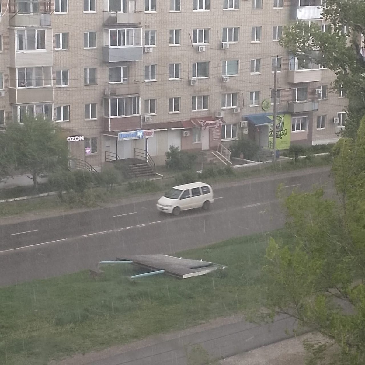 В Лесозаводске шквал с дождём и градом повалил рекламную конструкцию по ул