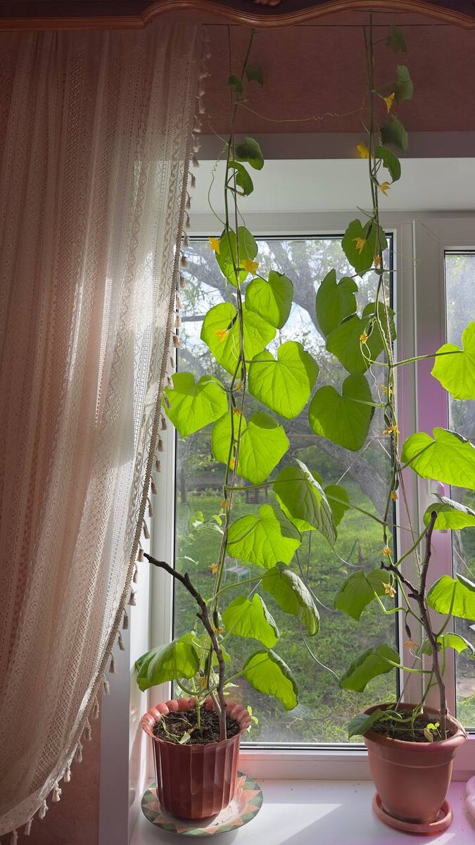 А вот огурцы себя чувствуют нормально на окошке, скоро будем собирать урожай)