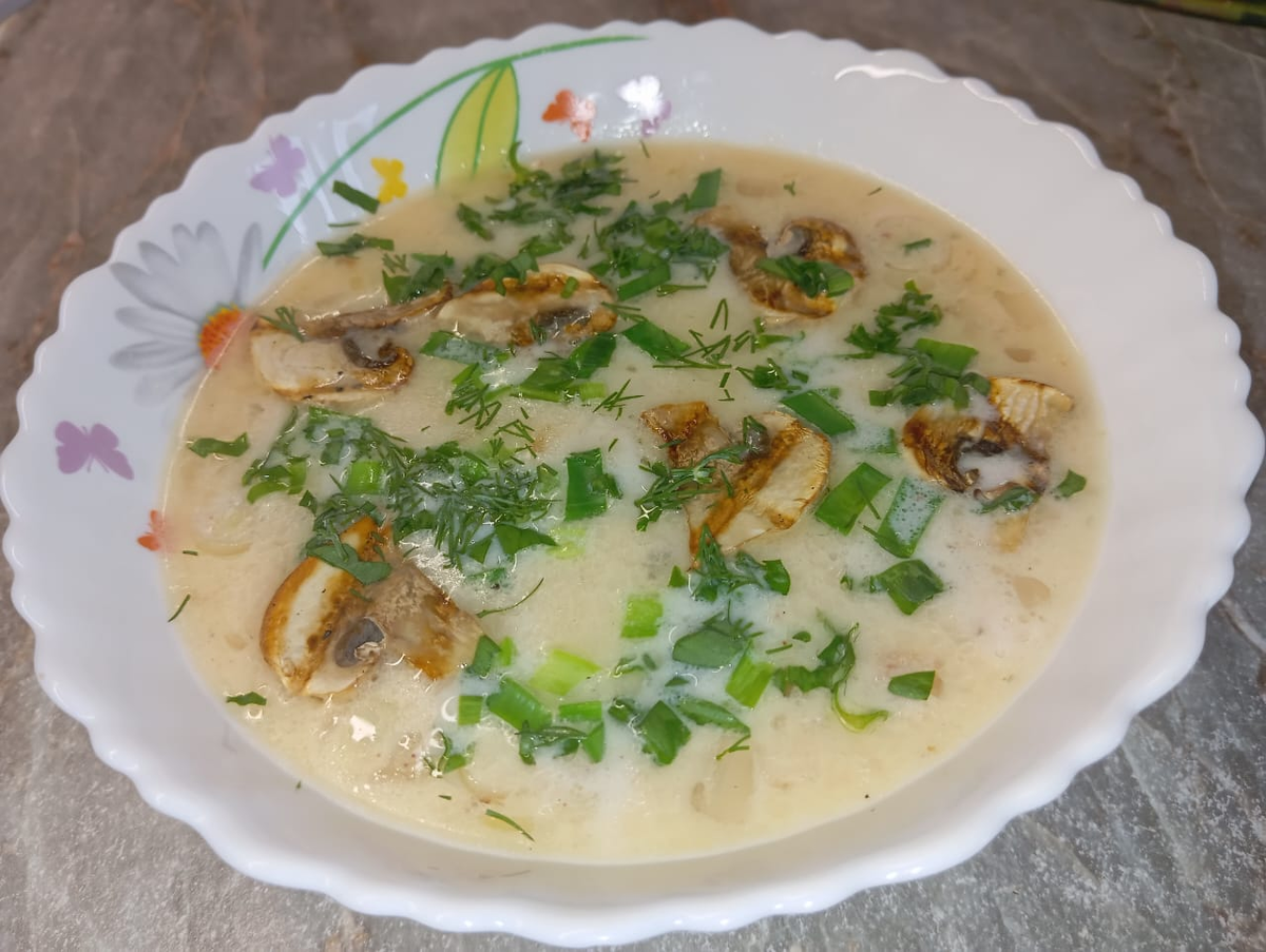 Сорок шестой день моего похудения начался с желания свернуть горы! Я же на пенсии! На работу торопиться не надо, свободного времени - вагон и маленькая тележка! Главное, правильно его распределить. Конфетке приготовила на завтрак блинчики, а сама выпила стакан теплой воды и призадумалась о том, чтобы такого приготовить на обед... И так захотелось тетушкиного немецкого супчика "Käsesuppe"! Этот суп очень популярен в Германии и вернувшись из поездки с исторической Родины своих предков, я погуглила и нашла несколько вариантов его приготовления. Сегодня же приготовлю примерно так, как нас угощала тетушка. Приготовила фарш - кусочек говядины 350гр. пропустила через мясорубку, слегка присолила и поперчила. Для этого супа нужен лук порей, в нашем же поселке все продукты привозные и не всегда получается купить то, что необходимо. Сегодня получилось выбрать в магазине всего одну приличную белую часть этого лука. Жаль... Фарш с небольшим количеством растительного масла обжарила на сковороде до