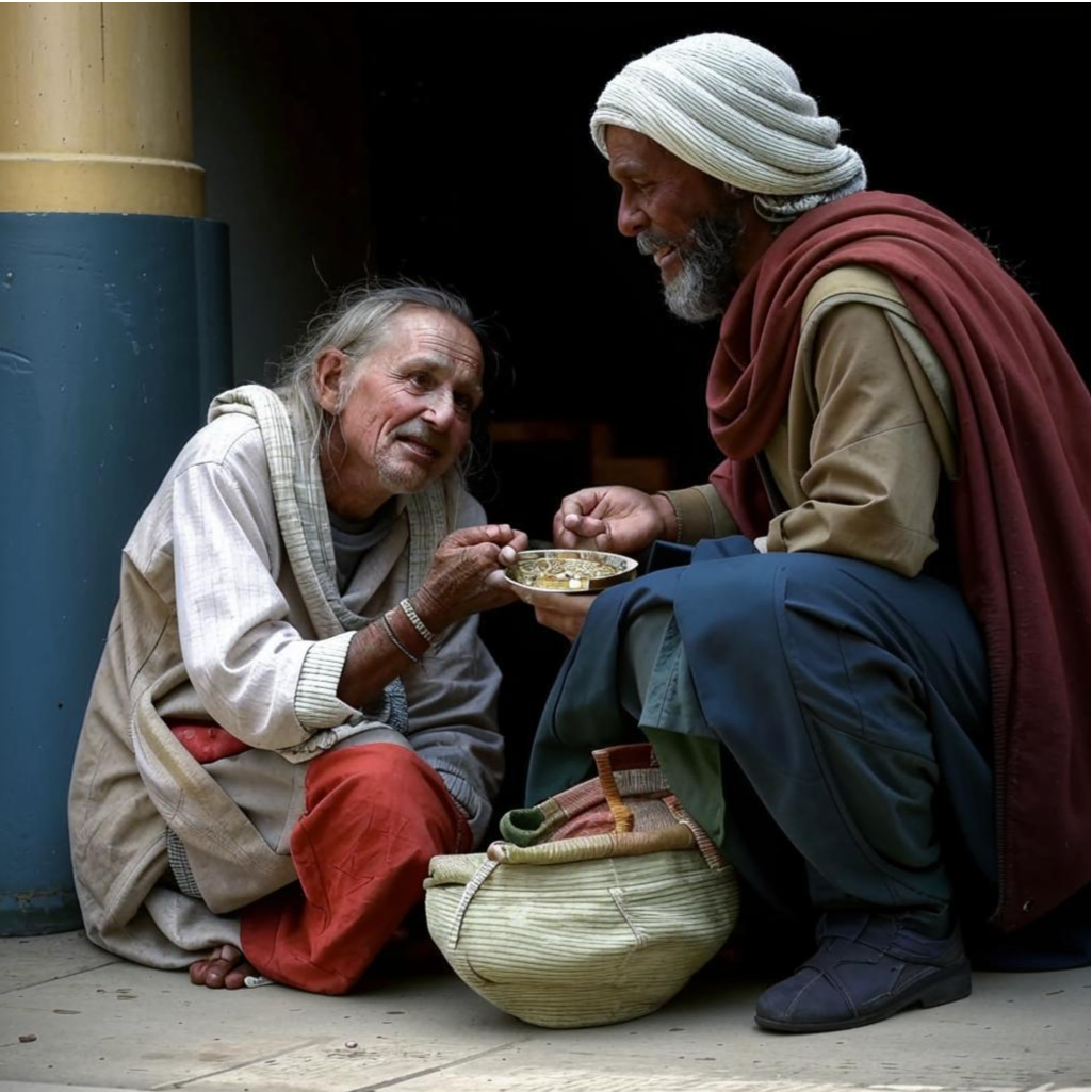 По моему скромному мнению, милостыня равно «милость». Хотя конечно милость это более глобальное понятие, однако милостыня, это продуктивная, прикладная и очень эффективная(для подающего и принимающего) ее часть. Милость, она от Бога. Милостыня, она тоже от Бога. И то и другое творится руками человека. Его Душой. Его волеизъявлением. И если считать, что сама Душа от Бога, что Душа и есть частица Бога в человеке, то и милостыня подается Богом, через человека. Они, эти руки, они ведь разные бывают. Подают как напрямую, так и опосредованно. А принимают милостыню тоже разные руки. Это могут быть детские руки, голодного ли, больного ли ребенка. Или руки старика, ветхие, изношенные до полупрозрачности. Или руки бездомного бедолаги, с кривыми черными ногтями, голодного страдальца с мукой во взоре, или тусклым равнодушным взглядом. Понятно, что при подаче милостыни требуется разумный подход, кому подать, а кому не следует. Не всякий человек поймет так сразу, что перед ним «профессиональный» нищий, который так «работает». У них хорошая техника воздействия. А вот те люди, которые сами голодали, которые сами получали милостыню напрямую, в том или ином ее виде, те видят насквозь, пронзительно. И точно знают, кому подать. И подают. И видящие люди тоже это знают. Милостыня она ведь разная. И телесная и духовная. Можно деньги дать и ли еду, лекарство или одежду. Да хоть стакан воды, хоть глоток ее. Либо твое прямое участие в некой ситуации, результатом которой будет помощь человеку. А бывает так, что требуется человеку помощь иного рода. Совет, толкование ситуации, взгляд с другой стороны или с изнанки, причем зачастую это горькое лекарство, но полезное, а раз бесплатное, то милостыня это. Подал и забудь сразу. Подал и не жди благодарности, уходи сразу. Подал правой рукой, а левая и не знает про это. Не ради того, что «надо людям добро делать, я вот сделаю его сейчас, мне плюсик будет». Выпячивание добра даже перед собой самим, это зла хуже. Ханжество хищное, ловля «даров от Бога» это. Ты вот увидел того нищего, а темная часть Души говорит: «Не подавай, ты столько сил тратишь, зарабатываешь эти деньги!» А светлая часть Души говорит: «Подай, ты не ему, ты себе подаешь» Что значит «себе подаешь»? Если ты уже пришел в этот мир, то это само по себе милость Божья. А сколько тебе Бог послал людей добрых на пути? Много, очень много. Это его милость тебе. Меня иногда спрашивают: «Ну что, как жизнь, как дела?», Всегда отвечаю: «Бог миловал». А мне говорят: «Как это, ты что, святой или избранник такой у Бога?» Отвечаю, что ведь и тебя Бог милует, и ты и я не святые, но живы и в меру здоровы, не иначе милость это. А раз ты ее «милость» принимал, брал, пора благодарить, пора Богу подношение сделать. От Души подашь милостыню человеку нуждающемуся- Богу подношение сделаешь через человека. И будет у тебя шанс в будущем, что и тебе помогут, вот и значит, что себе подаешь. Милостыня, это разговор с Богом. Той, самой чистой и тонкой частью своей Души поговоришь, хоть и недолго, но достаточно. Кто подавал, знает, как оно это ощущение. Облегчение большое, радость, благость какая-то приходит. Особенно радует, что не ожидая слов благодарности, ушел поскорее, что бы не смущать человека, который тут же начнет ту буханку хлеба с колбасой жадно поедать. У нас в поселке тоже есть нищие, но они имеют место проживания, прост