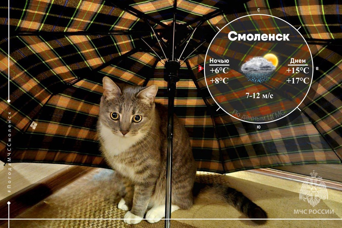 Дождливый май 🌦 Завтра в Смоленской области будет облачно с прояснениями. Ожидаются небольшие дожди, преимущественно днем, местами возможен слабый туман ночью. Ветер будет дуть западный со скоростью 4-9 м/с, днем 7-12 м/с. Атмосферное давление 730 мм рт. столба, существенно меняться не будет. 🌡 Температура воздуха: - по области: +5°C …+10°C, днем +13°C…+18°C; - в Смоленске: ночью +6°C … +8°C, днем +15°C…+17°C. 📌 Обо всех изменениях в погоде смотри здесь. Раньше замечали, что если в этот день стоит туман, то скоро установится сухая погода. МЧС России обращает внимание автомобилистов на соблюдение правил безопасности во время тумана. Соблюдайте скоростной режим и дистанцию. Пешеходам нужно быть не менее внимательными. Погода в этот день год назад. @ГУ МЧС России по Смоленской области #МЧСРоссии #ПогодаСмоленск