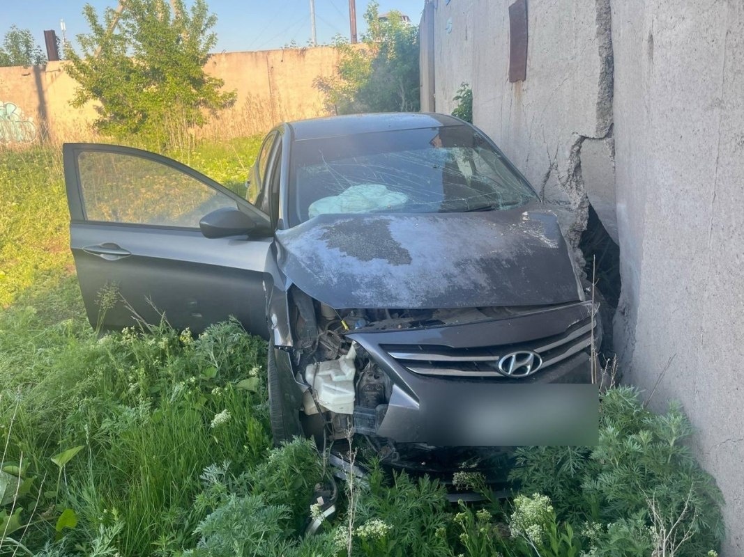 В Оренбурге водитель автомобиля Hyundai Solaris на скорости протаранил бетонный забор