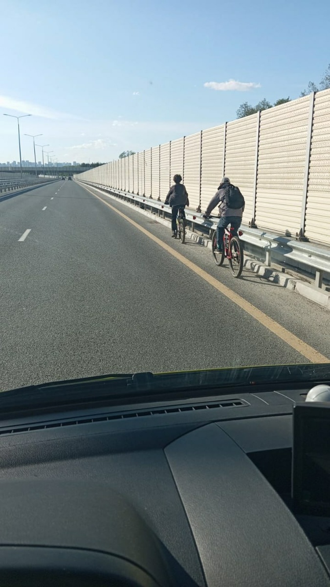 Велосипедисты были перехвачены на восьмом километре платной дороги в сторону Уфы. С ними проведена разъяснительная беседа о запрете движения тихоходных транспортных средств в зоне действия дорожного знака «Дорога для автомобилей», после чего их сопроводили до ближайшего съезда с автодороги.