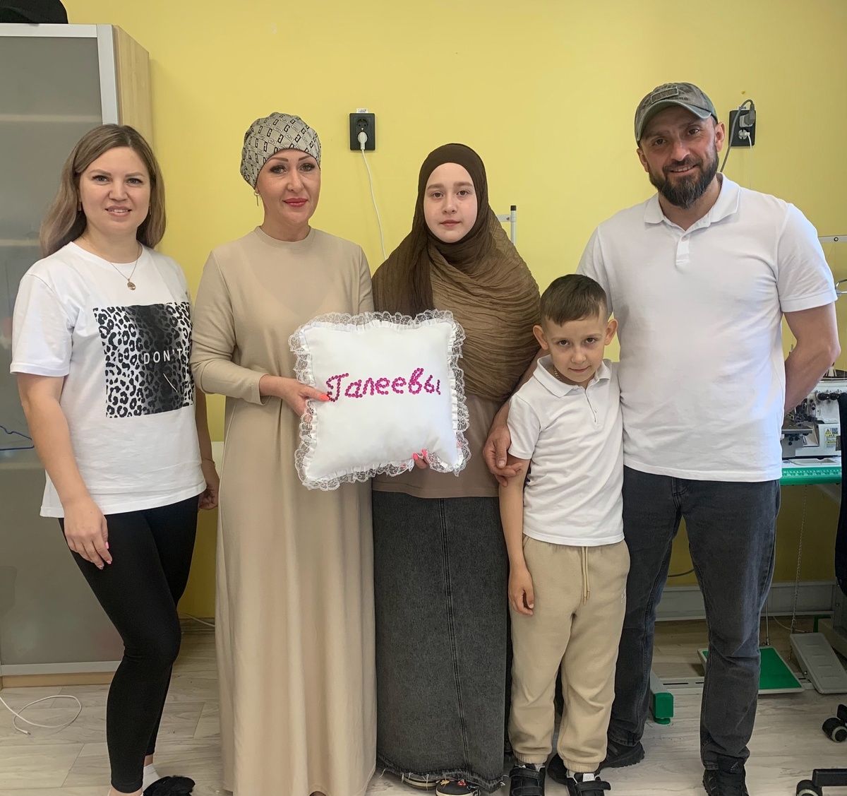 Участники события попробовали себя в необычном творческом процессе — создании семейной подушки с вышитой фамилией. Подобные занятия помогают укрепить связь между поколениями, формируют атмосферу сотрудничества, доверия и тепла внутри семьи.