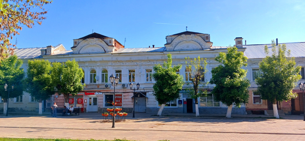 Вот мы и добрались до вольского городского банка – настоящего франта среди зданий Революционной улицы! Построенный в 1878 году, он щеголяет пышной эклектикой, тут тебе и строгая классика, и игривые барочные завитушки, и даже намёк на ренессансную солидность – будто архитектор не мог определиться, какой стиль выбрать, и взял понемногу от каждого. А ведь начинал банк куда скромнее – с 1864 года ютился в здании городской управы, пока не скопил достаточно капиталов (и амбиций!), чтобы обзавестись собственным "дворцом".