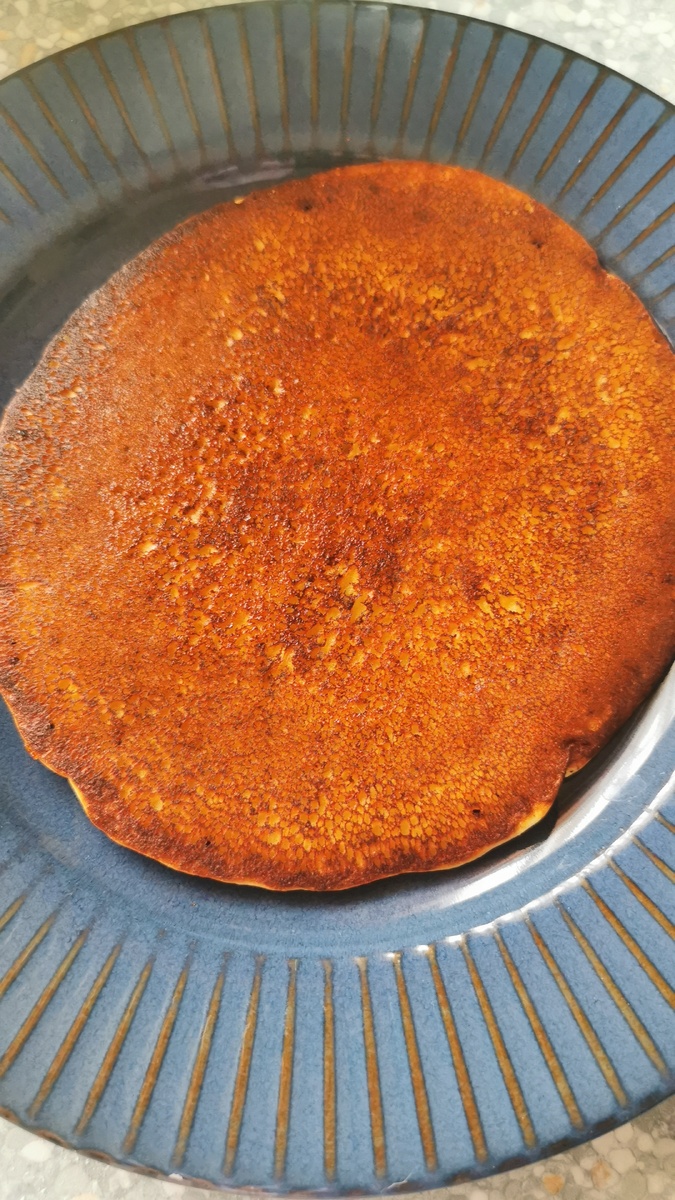 Скоровородку смазываем слегка маслом, хотя это в принципе необязательно. И выливаем на сковородку полный половник, ждём до появления пузырьков и переворачиваем.
