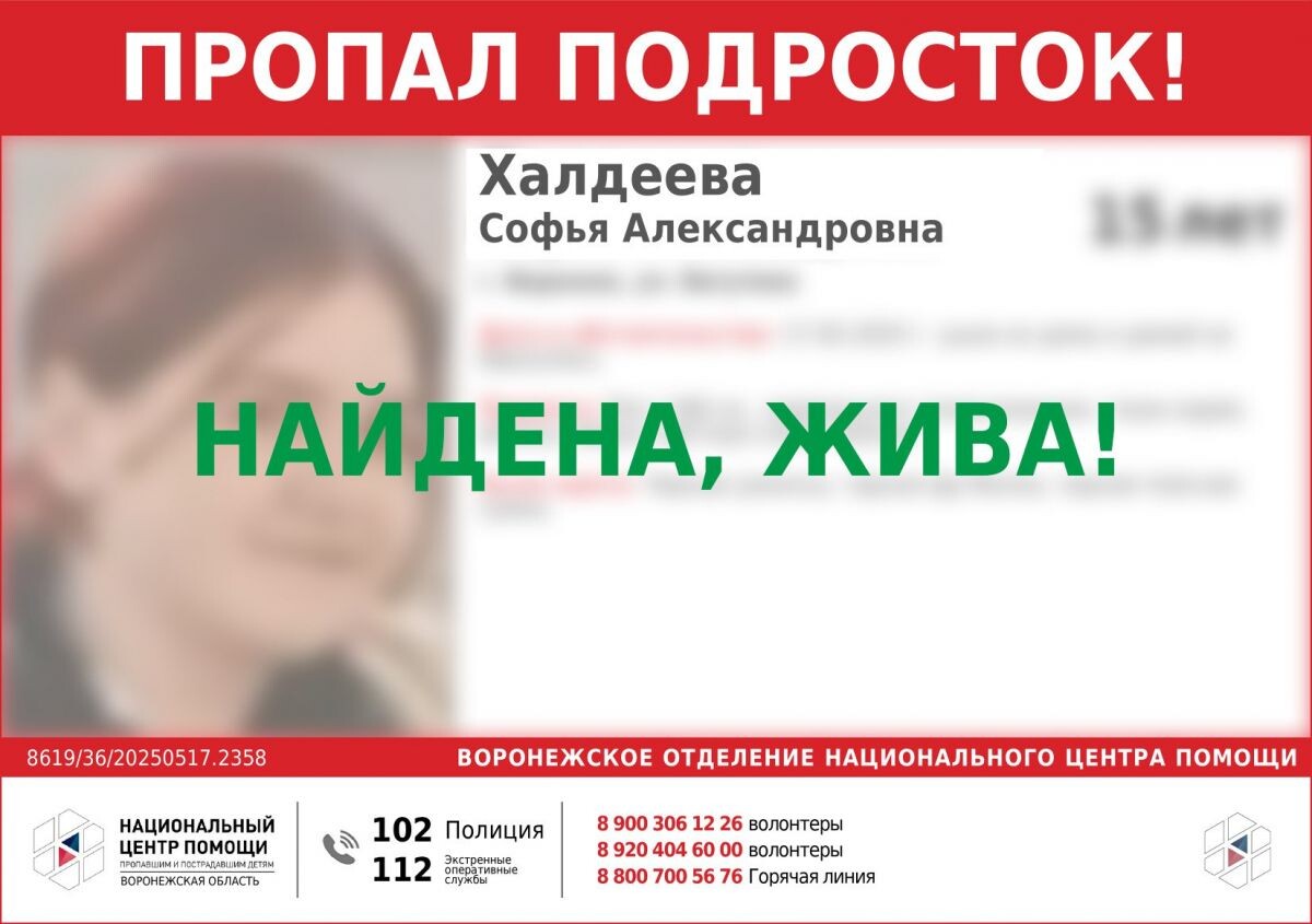 Пропавшую в субботу, 17 мая, Софью Халдееву нашли в Воронеже. Девочка вернулась домой и находится в безопасности. Об этом рассказали волонтёры регионального отделения Национального центра помощи.