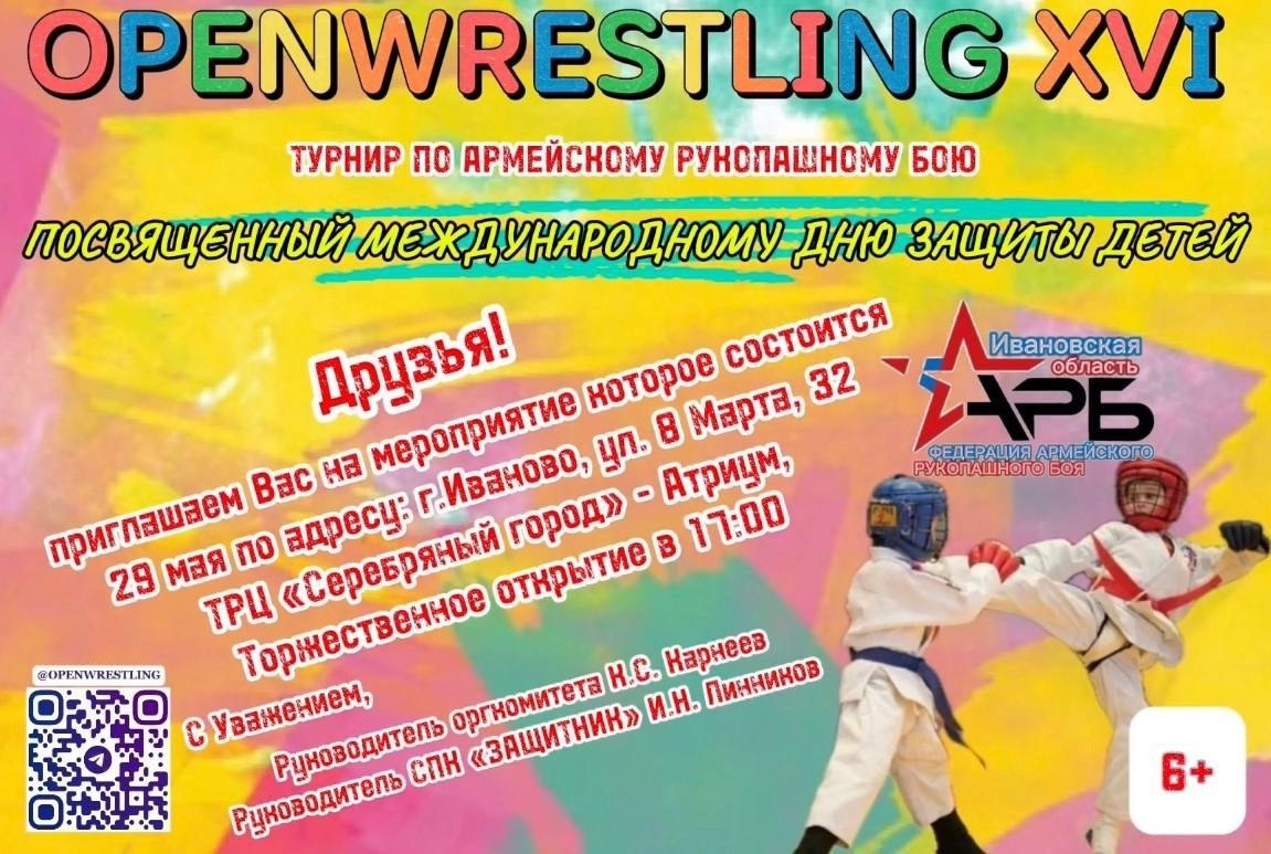 В Иванове пройдёт турнир по армейскому рукопашному бою 29 мая в ивановском ТРЦ «Серебряном городе» пройдёт турнир по армейскому рукопашному бою «Openwrestling XVI» (6+). Состязания посвящены Международному дню защиты детей. Зрителей ожидают захватывающие поединки, яркая развлекательная программа, большая тематическая фотозона и розыгрыш призов. Перед началом состязаний желающие смогут принять участие в мастер-классах. Вход свободный. Фото: «Openwrestling XVI»