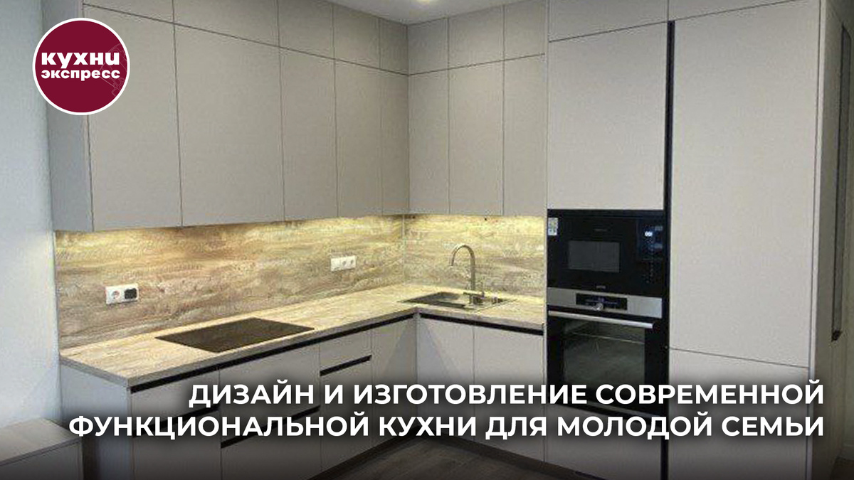 Современная, функциональная кухня в бежевых тонах для клиента Кухни Экспресс