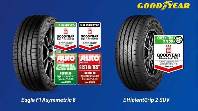 Что касается конкретных моделей летних шин, то лучшие результаты по итогам пяти летних тестов 2025 года показала флагманская резина Goodyear Eagle F1 Asymmetric 6, которая заняла два первых и одно второе место в сравнительных испытаниях AutoBild. Покрышки EfficientGrip 2 SUV, в свою очередь, в одном из тестов заняли третью строку с образцовым статусом.