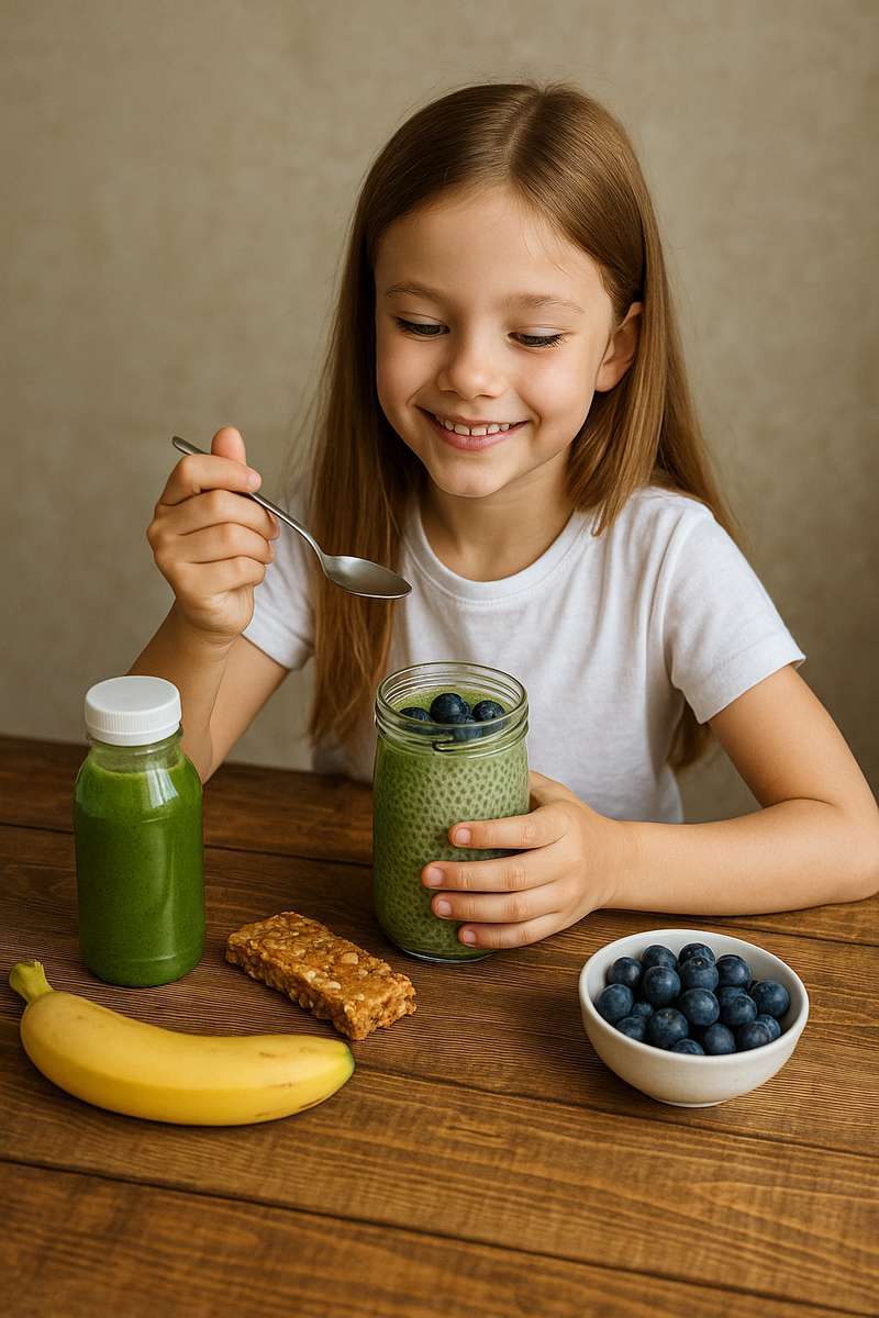 Если ваш ребёнок занимается спортом, много двигается, посещает кружки или секции, — ему нужен перекус, который работает на энергию, концентрацию и восстановление. Но булочка с чаем или сладкий батончик из автомата с этой задачей не справляются. – Облепиха, банан, крапива, лимон, мята, семена чиа – Натуральный источник витамина С и хлорофилла Формат: бутылка 250 мл — удобно взять с собой – Грейпфрут, сныть, чиа, спирулина, псиллиум, растительный белок – Идеален до и после тренировки Действие: энергия + восстановление + клетчатка для ЖКТ – Без лактозы, без сахара – Поддерживает микрофлору кишечника и усвоение белка Идея: подавайте с ложкой гранолы или ягодами – Основа: чиа + растительное молоко – Добавки: сныть, банан, мёд, немного кокоса Польза: долгая энергия + клетчатка + магний – Овсяные хлопья, банан, финики, семена, облепиха, чёрная рябина – Без сахара и муки Формат: идеально в школу, кружки, поездки – Быстрые углеводы + магний и белок – Простой вариант до тренировк